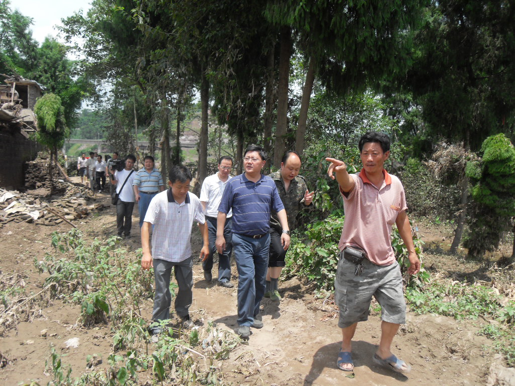 7月24日,达州市委常委、副市长何平,在渠县县委常委、常务副县长蔡文华,县委常委胡明尧和民政局局长王勇以及三汇镇委书记孙小雁、镇长王兴的陪同下,头顶烈日,步行数公里,深入到渠县三汇镇重灾村金河察看灾情并看望受灾群众。