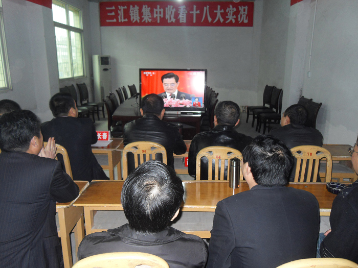 三汇镇组织收看十八大开幕式 字体:大 小 打印 关闭本页 作者: 来源:本站原创 发布时间:2012-11-15 10:29:42 点击数: 扫一扫下载渠县网APP 分享 分享到: 11月8日上午9时,中国共产党第十八次全国代表大会在人民大会堂开幕。三汇镇组织党政机关党员干部认真收看十八大开幕式。三汇镇党委书记王兴、镇长朱长春等在镇大会议室收看胡锦涛主席在开幕式上作题为《坚定不移沿着中国特色社会主义道路前进为全面建成小康社会而奋斗》的报告。(谭 国)
