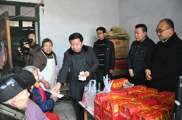 三汇镇领导看望慰问敬老院困难群众 字体:大 小 打印 关闭本页 作者:陈三江 来源:三汇镇 发布时间:2015-02-15 17:02:14 点击数: 扫一扫下载渠县网APP 分享 分享到: 2月15日下午,三汇镇委书记王兴、镇长曾涛到敬老院看望慰问孤寡老人、五保户、残疾人等困难群众,代表镇委、镇政府给他们送去了新春的祝福和新年的问候,并亲自分发慰问品和慰问金。 副镇长邓肖、镇民政办主任何小平陪同慰问。(陈三江)