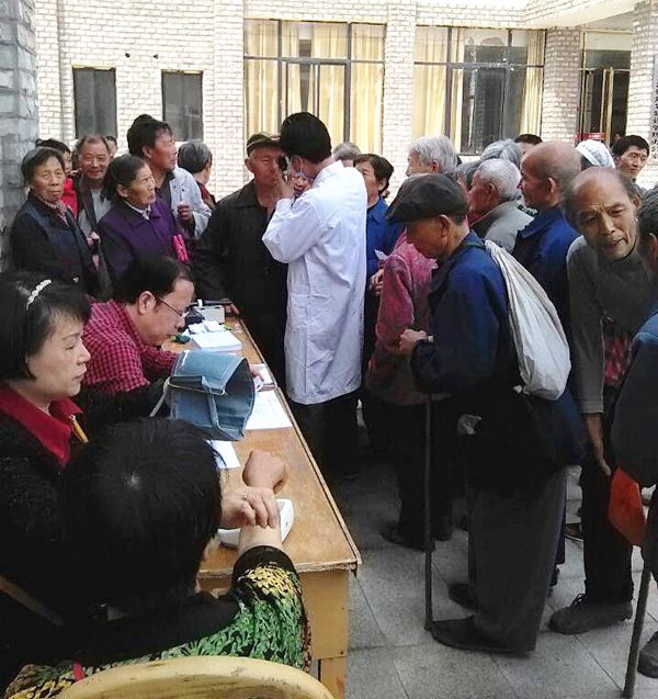 5月7日,三汇镇人民政府门口人头攒动,挤满了前来做白内障免费筛查的患者。