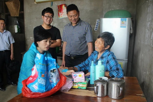 上午,吴旭与结对帮户杨光英老人亲切交谈,详细询问她的生活近况、身体状况、小孙女的上学情况,帮助老人联系农产品的销售渠道,送上洗衣粉、洗发水等日常用品。吴旭鼓励老人相信党和政府,坚持自力更生,在乡政府、村委的帮助下早日摘掉贫穷的帽子,希望老人遇到困难要及时给她打电话联系,也要多给乡政府和村委反映。同时要求随行人员要切实关心贫困户、关注留守老人,扎实做好扶贫工作。