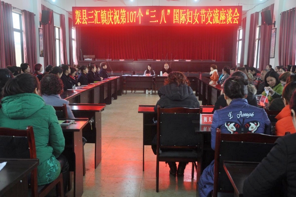3月6日上午,三汇镇召开以《把巾帼力量汇聚到党的伟大事业中》为主题的庆祝第107个“三八”国际劳动妇女节交流座谈会。各村(社区)、机关、镇属各单位110余名女职工代表参加会议。
