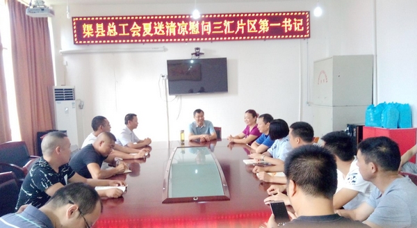 8月3 日,县委常委、政法委书记朱和志率县总工会工作人员一行,走进三汇镇,开展了“夏送清凉慰问三汇片区第一书记”的活动,汇东乡、汇北乡、汇南乡、丰乐镇贫困村第一书记收到了慰问大礼包。