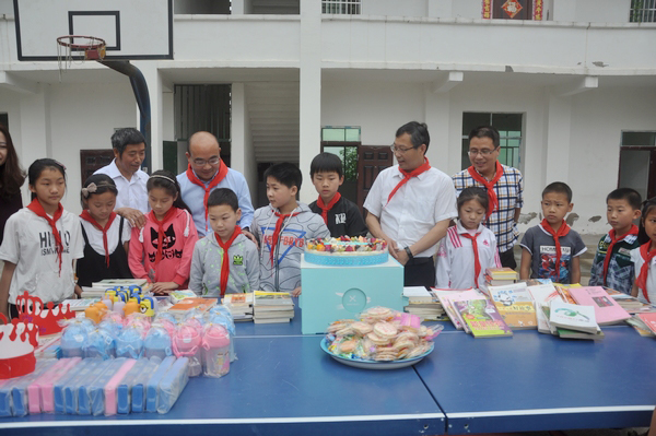 朱和志一行为孩子们送上了崭新的书包、文具、文具盒,还有孩子们喜欢的儿童读物和蛋糕。朱和志和孩子们一起歌唱《我们是共产主义接班人》,然后将切好的蛋糕分发到每一个孩子手中。一个个孩子背着崭新的书包,吃着香甜的蛋糕,红光满面、喜气洋洋,又唱又跳。