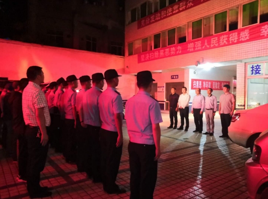 “书记同志:三汇镇扫黑除恶专项清查和集中宣传队伍集结完毕,请您指示!”“同志们:党中央习主席号令全党全国,打一场扫黑除恶的人民战争!有黑扫黑,无黑除恶,无恶治乱!用三年时间,摸线索、打犯罪、挖“保护伞”、治源头、强组织,确保人民安居乐业、社会安定有序、国家长治久安。按照县委、县政府和县扫黑办统一部署,我们今晚开展一次专项清查和集中宣传。请参战的同志们提高站位、严格执法、团结协作、认真负责!为‘打赢脱贫奔康攻坚战、建设幸福美丽新渠县’作出新的贡献!出发!”
