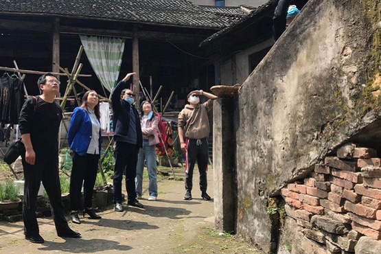 姚军一行仔细察看了正门山墙的文字、浮雕、图案,戏台、正殿、左右厢房的房屋结构、用电用气管线等,还检查了白蚁啃食柱头情况,询问了三汇镇文物保护具体措施,同时指出了房顶塌陷多处,房梁柱头腐朽多处,乱搭乱建破坏文物原貌,管网混乱易发火灾等问题。