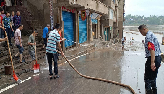 三汇镇积极开展洪灾过后道路清淤工作 字体:大 小 打印 关闭本页 作者:雷汉渠 来源:本站原创 发布时间:2021-09-07 15:50:07 点击数: 扫一扫下载渠县网APP 分享 分享到: 9月7日,洪灾过后,三江水位回降,三汇镇沿江城区主干路满是淤泥,镇党委政府迅速行动,组织机关干部、民兵应急连、村(社区)志愿者、党员群众共120余人第一时间赶赴各责任点位,采取人机结合清扫方式,以小组为单位,积极开展灾后清淤工作。 在清淤过程中,清淤小组成员充分发扬不怕脏、不怕苦的精神,清理路障,疏通沟渠,力求在最短的时间帮助群众恢复生产生活。