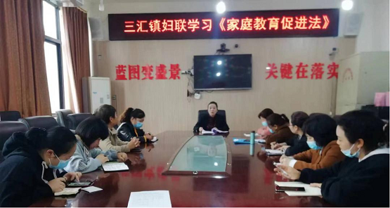 渠县三汇镇组织各村(社区)妇联学习《中华人民共和国家庭教育促进法》