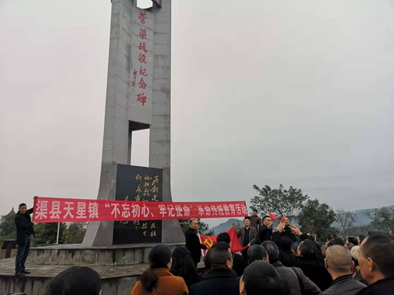 天星镇党委领导班子带领全镇党员干部职工来到了贵福镇红色渠县纪念园,100余名党员在纪念园入口整装集合,合唱了《我和我的祖国》《没有共产党就没有新中国》等歌曲,随后大家走进纪念馆,重温着那段战火烽烟的峥嵘岁月,感悟着澎湃雄浑的初心力量。