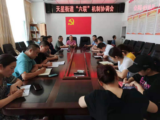 保平安、固稳定、促和谐,在建党100周年来临之际,社会和谐稳定是当前的重要工作之一。为保障街道平安建设工作有序开展助力全县社会和谐稳定大局,6月22日下午天星街道组织召开“六联”机制协调会。