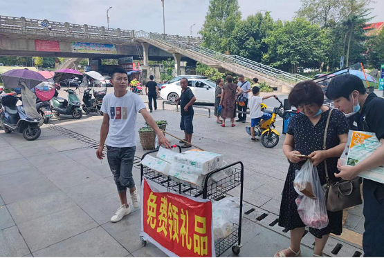 7月21日上午10时左右,天星街道滨江社区网格员杨军在一日双巡中发现这样一幕引起了她的警觉“来扫一个,嬢嬢,只要扫一下二维码填一下信息就可以免费获得礼品哟,你看嘛礼品都在这里,免费挑,我们是给商家招募数据操作员的,居家工作日新100-200,现结哟”,有可能是电信诈骗,杨军立即给街道反诈专班打电话上报,同时给天星派出所打电话报警,为了不打草惊蛇,在等待民警的同时,杨军待在远处拍照取证。