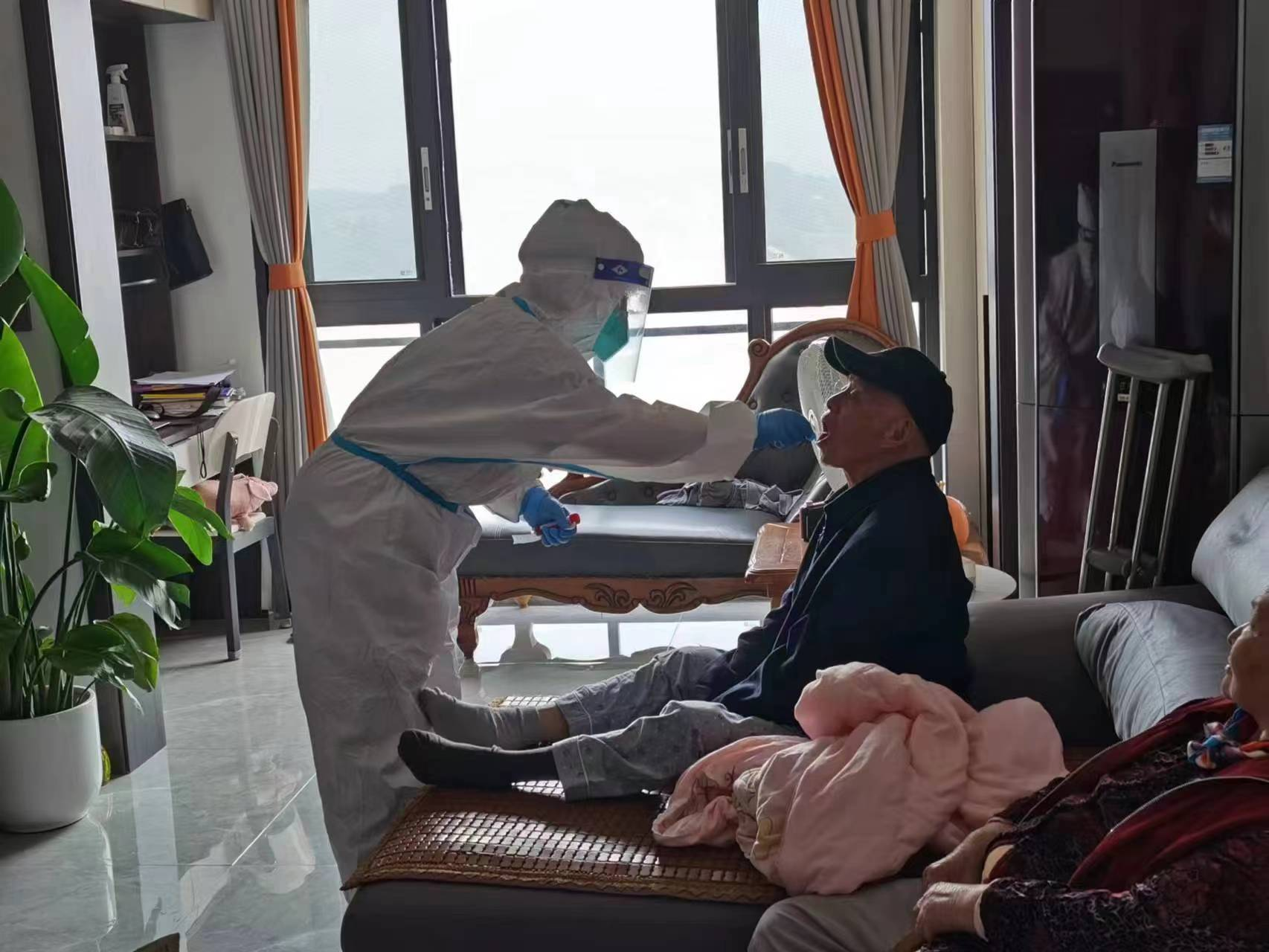 统筹协作,摸清信息。社区联动“双报到”单位及志愿者在各小区开展敲门行动,告知全民核酸检测注意事项及摸清人口信息,确定小区人数。最终实现出入口、等待区、检测区设置合理,检测物资及现场应急准备充分。同时为特殊群体开启绿色通道,社区干部协同医护人员,对行动不便的群众和居家隔离人员进行上门采样,确保核酸检测应检尽检。