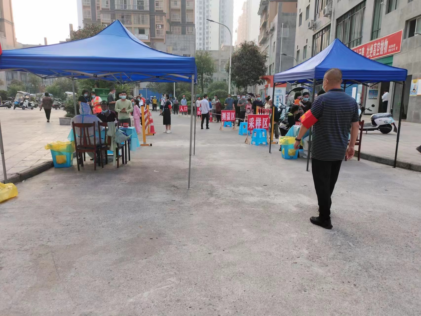 制定方案,落实责任。制定了全员核酸检测分工方案,联合双报到单位、志愿者组织及医务人员召开全员核酸检测专项部署工作会,做到分工明确、责任到人。社区共设置8个核酸采样点,24个核酸检测台,配备了48名采样登记人员,发动党员干部、志愿者等200余名维护秩序,为社区快速有序开展核酸采样工作提供保障。