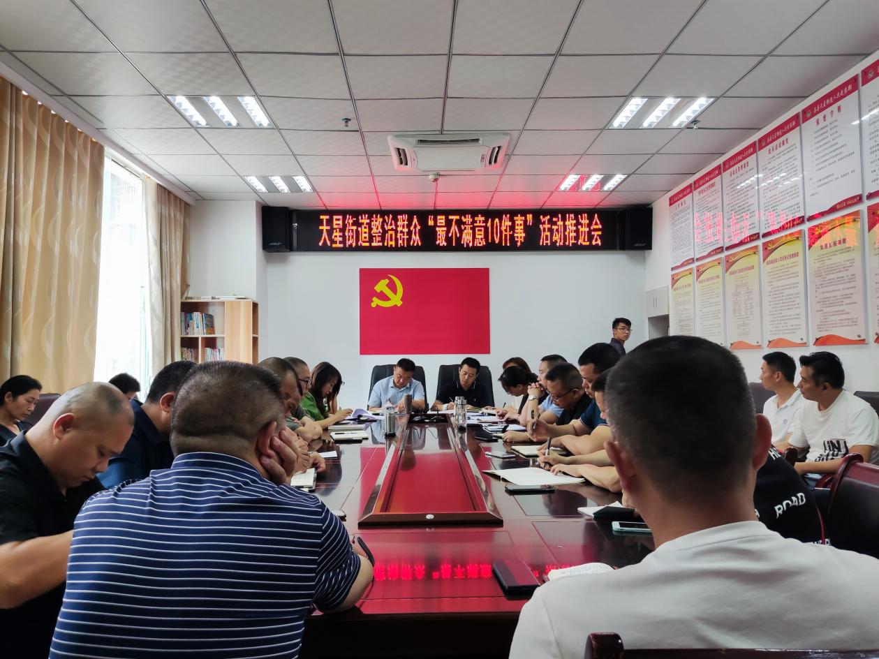9月20日天星街道召开整治“群众最不满意的10件事”活动推进会,听取第三季度整治工作开展情况,调度推进下一步工作,会议由党工委书记黄云明主持,班子成员和各村(社区)书记参与会议。