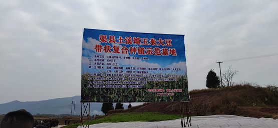 三是多方发力,打造玉米大豆带状复合种植示范基地。由达州市农业农村局、渠县农业农村局、四川省农晟农业科技有限公司联合土溪镇党委政府在平碾村、金蝉村、汉亭村、汉阙社区联合打造玉米大豆带状复合种植1000亩示范基地,四川农业大学、达州市农业科学研究院提供技术支撑,集成“选配粮种、机械直播、扩间增光、缩小株保密”核心技术和“化肥农药双减、化控抗倒、绿色防控”等配套技术。努力实现大豆玉米不减产(平均亩产500公斤以上),征收一季豆(150公斤以上)。玉米大豆带状复合种植要做好迎接各种风险挑战的准备,着眼国家粮食发展安全战略,稳住农业基本盘、做好“三农”工作,确保稳产保供,确保农业农村稳定发展。