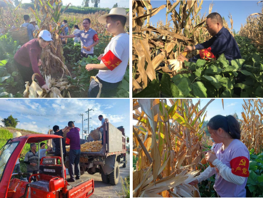 所有党员干部按照各自专长,分工明确,配合默契,力气大的男同志负责背筐和转运,剩下的干部掰玉米、搬玉米忙得不亦乐乎,不一会儿就收割了一大片,看着满车金黄的玉米,大家的脸上都洋溢着丰收的喜悦。