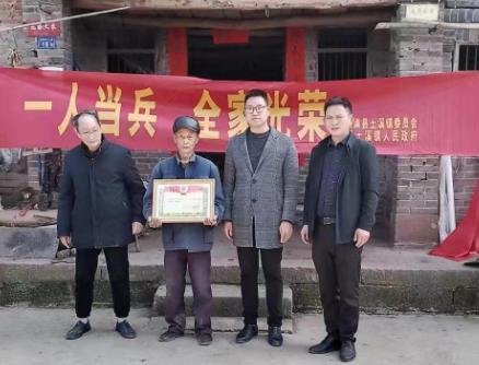 “敲锣打鼓举红旗,入户走访送喜报”。3月8日下午,土溪镇及城坝村镇村两级组织干部群众为立功受奖家属送三等功喜报。