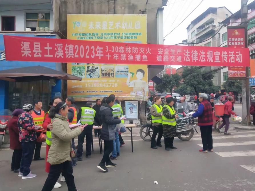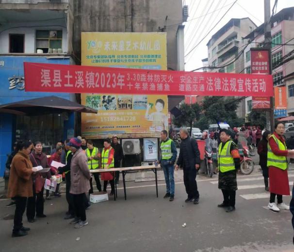 为认真贯彻落实习近平总书记关于森林草原防灭火等工作的重要论述和指示精神,切实抓好森林防灭火、十年禁渔捕鱼、安全生产、道路交通安全等工作,3月27日上午,土溪镇抢抓清明节前逢场档期,走上街头开展法治宣传活动,全力营造人人重视、人人知晓、人人参与的安全生产良好氛围。
