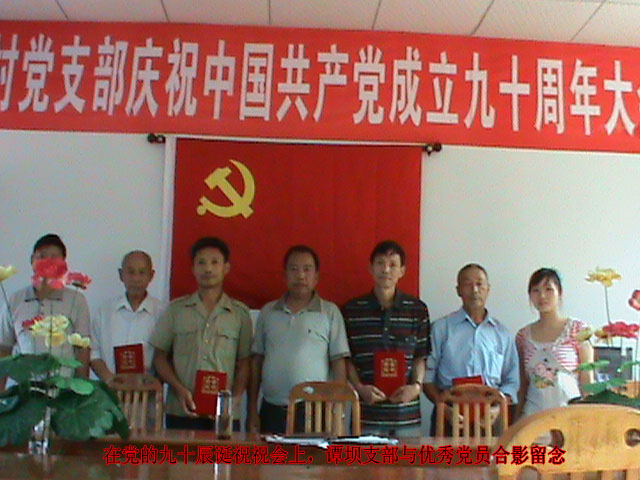 文崇镇谭坝村支部开展庆祝建党90周年活动 字体:大 小 打印 关闭本页 作者: 来源:本站原创 发布时间:2011-07-04 11:29:46 点击数: 扫一扫下载渠县网APP 分享 分享到: 7月1日,渠县文崇镇谭坝村党支部组织全村党员干部,隆重庆祝中国共产党诞辰90周年。 会上,谭坝村党支部书记陈星明再次阐述了“没有共产党就不没有新中国”这一真理,同全体共产党员重温了中国共产党成立九十周年走过的艰辛历程,以及取得的辉煌成绩。大会还表彰了“新时期优秀共产党员”,慰问了老弱病困的共产党员;党员宣誓。增强了基层党组织的凝聚力和战斗力。 会后,社会各界人士向全村党员同志赠送了礼品。(杨治海)