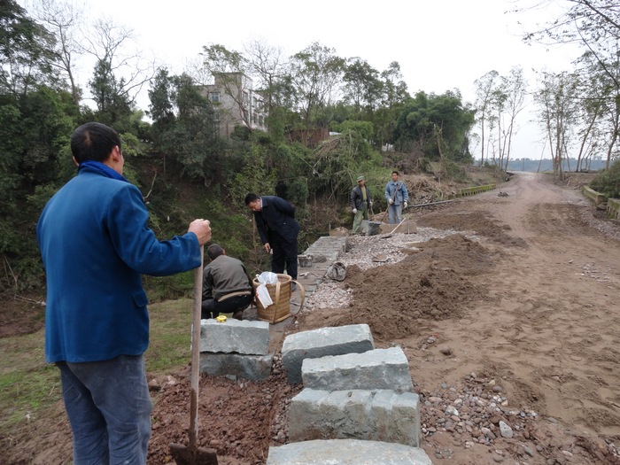 察看三房营桥的补修情况