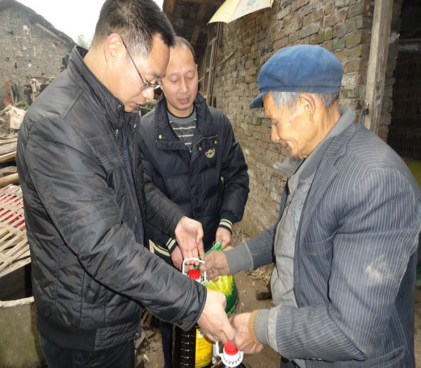 12月20日下午,县住建局驻谭坝村干部雷振川、江帆给谭坝村1社灾民(困难户):王学东、王伯良分别送去了大米、清油、白糖等物资,让他们感受到了党和政府的温暖。