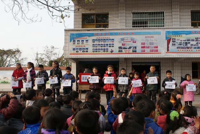 活动中,该校500师生参加了“献爱心、送温暖”捐款活动,教师捐款890元,学生捐款1447元,共收到捐款2337元。