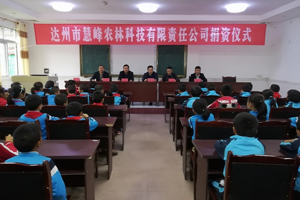 11月9日,达州市慧峰农林科技有限责任公司法人毕文峰到万寿乡中心学校开展爱心捐助活动,为困难学生捐赠现金10000元。在万寿乡党委、政府的倡导下,万寿乡中心学校的贫困学生再次感受到了社会和组织的温暖。万寿乡党委书记刘小嫣、乡长唐利参加活动。