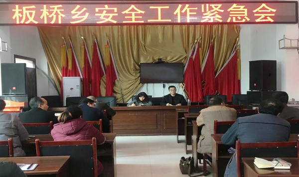 3月7日下午,板桥乡召开安全生产工作会。全体乡机关干部,村社区书记主任,学校医院主要负责人,场镇超市相关业主参加会议。