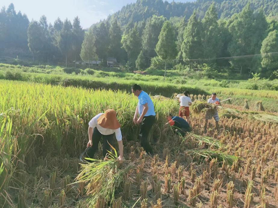 曹家村5组贫困户赵彪:党的干部硬是好哟!我一家5口人的谷子,全靠党员志愿者队伍帮我家收回来啰。
