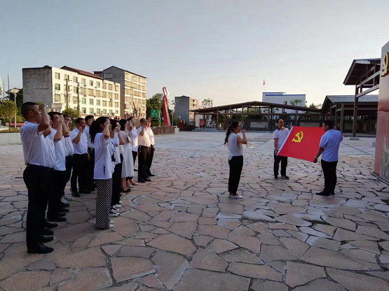 为加强党员干部思想政治教育,在红色纪念园,组织镇全体党员干部面对党旗重温入党誓词。党员干部们高举右手,庄严宣誓,铿锵有力的誓词,震撼着在场每一位党员干部,让大家重温了自己加入中国共产党时的庄严承诺,提醒着全镇党员干部要一直不忘初心、牢记使命、努力奋进。