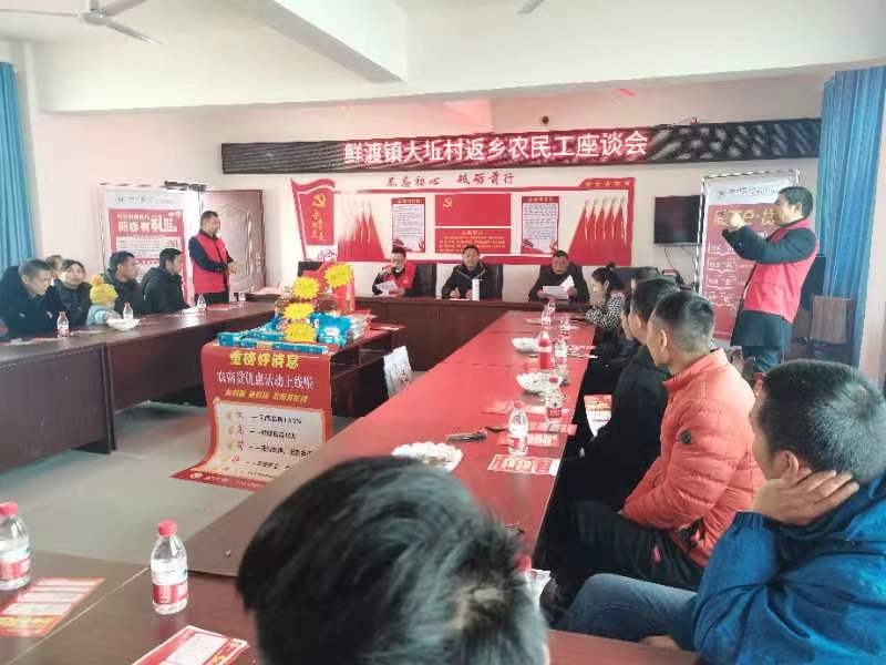 春回大地,万象更新。在新春佳节即将来临之际,2023年1月11日,鲜渡镇党委主持召开了农民工返乡创业座谈会,广泛召集返乡农民工齐聚一堂,共话家常,鲜渡镇党委书记和班子成员参会,宣讲就业创业优惠政策,并了解他们回乡创业、就业的想法和需求。此次座谈会主要围绕三个方面。