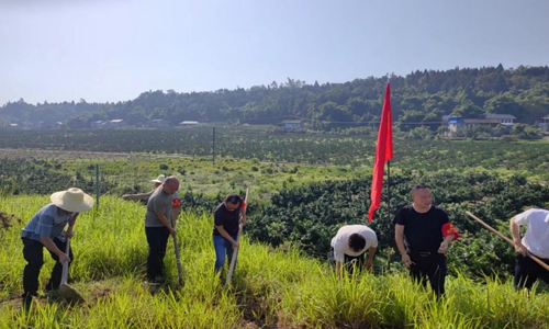 进企业,产业兴,助农增收促发展。近日,随着气温上升,加上前段时间雨水较多,金花村的柑橘基地杂草丛生,影响了柑橘的生长。鲜渡镇组织镇在职党员、村退休党员干部40余人,深入柑橘基地展开锄草行动,活动现场,党员们干劲十足,纷纷撸起袖子、拾起工具、弯下身子,有条不紊,互相配合,为来年柑橘丰收做好准备。