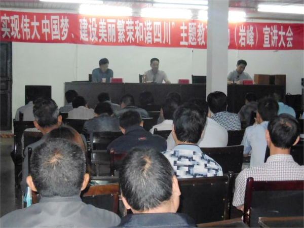 唱响中国梦,抒发爱国情,凝聚正能量、建设新四川。5月29日,岩峰镇政府大会议室内座无虚席,掌声阵阵。县委宣讲团第19分团来到岩峰,开展“实现伟大中国梦、建设美丽繁荣和谐四川”主题教育宣讲。渠北乡、李馥乡、青神乡、水口乡、岩峰镇五乡镇的辅导队成员、老党员代表、部分退休老干部共计100余人聆听了报告。