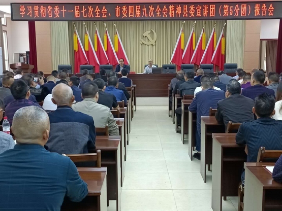 9月24日上午,县委宣讲团(第五分团)到岩峰镇宣讲省委十一届七次全会和市委四届九次全会精神。岩峰镇、贵福镇、三板镇、巨光乡领导班子成员、各部门(单位)主要负责人,各村(社区)书记、主任及各村基层理论宣讲员280余人聆听了报告。