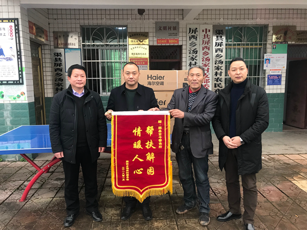 1月26日,渠县知名爱心企业古今香食府董事长张全文赴屏西乡汤家村看望村社干部,并为村委会捐赠空调1台。