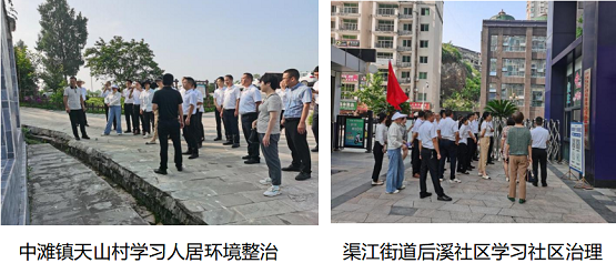 考察组一行通过实地查看、探讨交流、听取讲解等方式,到中滩镇、渠江街道办、安北乡、贵福镇、岩峰镇、巨光乡、静边镇和合力镇观摩学习人居环境整治、社区治理、产业发展、集体经济、基层治理等先进工作经验。通过感受了解其他乡镇在乡村振兴、基层治理、产业发展等工作中的亮点和先进做法,找差距、添举措、补短板、促发展。