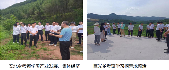 6月14日,由党委书记王先东、镇长杨舒带队,镇党委政府班子成员、村(社区)党组织书记、党员干部共计28人到中滩镇、渠江街道办等8个乡镇(街道)考察学习。