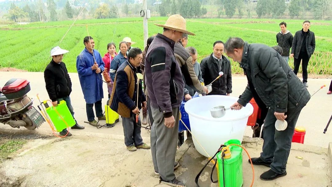 有庆镇龙滩村支部书记 赵毅今天我们组织村民赶在下雨之前,对油菜小麦进行田间管理,对生长旺盛的我们施“多效挫”,控旺助长,对涨势不好的我们追施“尿素叶面肥”,促进它生长,确保小春(作物)增产增收。