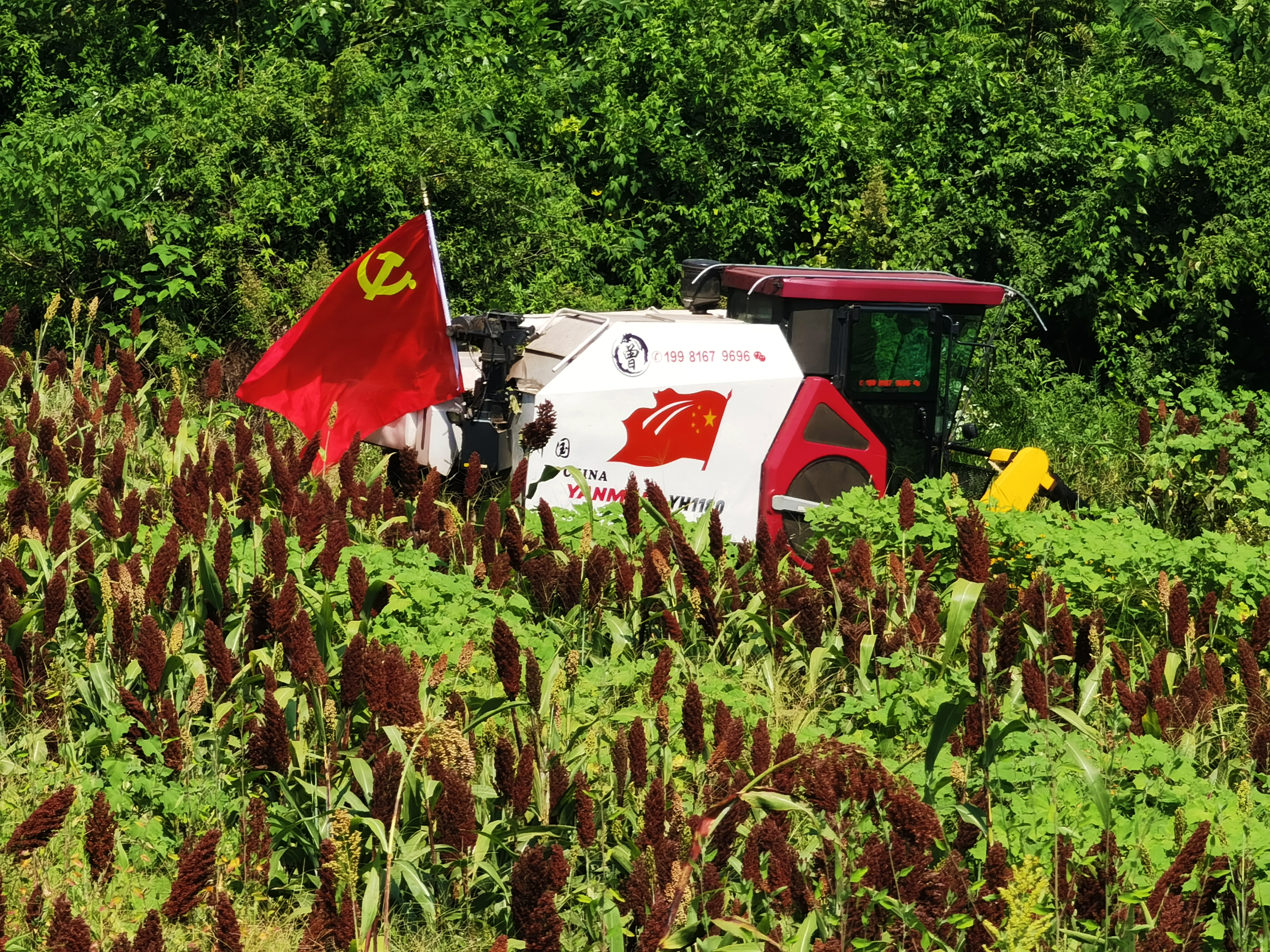 随着立秋,丰收来临。在有庆镇九龙村,业主种植的百亩高粱已将红红的灯笼高高挂起,正式进入收获阶段。一大早,镇村党员干部就到现场帮忙采收机器无法采摘的高粱,机器收高粱的轰鸣声伴随着蝉鸣,高唱着丰收,炎炎烈日也抵不住大家的喜悦之情。