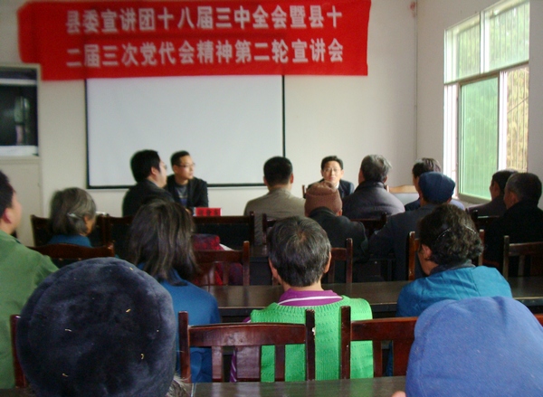 县委党校副校长张世东对党的十八届三中全会精神结合农村实际,就城乡一体化发展机制、“单独二孩”政策、农村土地使用管理、农业经营模式以及义务教育、新农合、新农保、进城落户农民权益等保障体系政策进行了宣讲。
