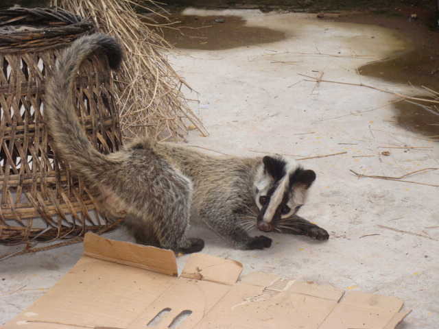 8月26日上午9时许,正准备下村的四川省渠县涌兴林业站站长肖明在涌兴街道上,见一中年农民正手牵着一只身型像猫,脸型像狗,爪子像鼠,鼻子像猪的动物沿街叫卖,凭着职业敏感,他意识到这只“四不像”的动物有可能是国家保护动物,便迅即将情况报告了渠县森林公安局。随后,又及时联系了涌兴派出所并通知涌兴林业站人员,通过对这位村民进行《国家野生动物保护法》的宣传,将这只长约60厘米,体重约11公斤的“四不像”动物顺利挡获。
