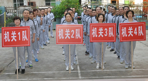 为积极响应国务院颁布的《全民健身条例》,贯彻落实全民健身运动要求,集中展示镇机关干部职工的精神风貌,推动镇机关全民健身运动的深入开展,2015年10月14日至10月15日,渠县涌兴镇政府机关举办第一届职工运动会。