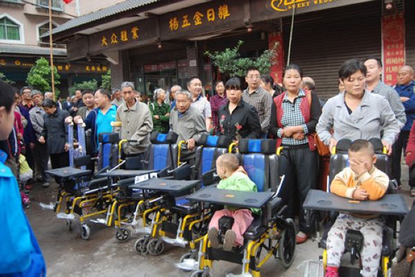 活动中为杨海艺等15名脑瘫儿童、重度肢残儿童发放了脑瘫儿童专用轮椅,为重度肢体残疾人发放了拐杖等辅助器具。