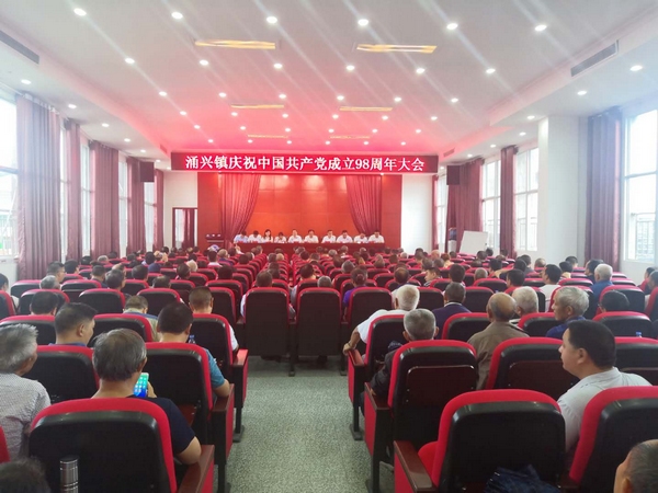 为庆祝中国共产党诞生98周年,进一步总结经验,表彰先进,激励广大党员领导干部敢担当,进一步增强党组织的凝聚力和战斗力,7月1日,涌兴镇召开庆祝建党98周年暨表扬大会,会议由镇长贺小华主持,各村(社区)三职干部、各村(社区)村(居)民小组长、老党员、老干部代表、先进基层党组织、先进党小组、优秀党员、镇属支部书记暨及全体机关工作人员共200余人参加会议。