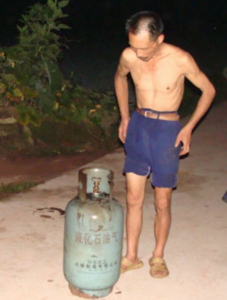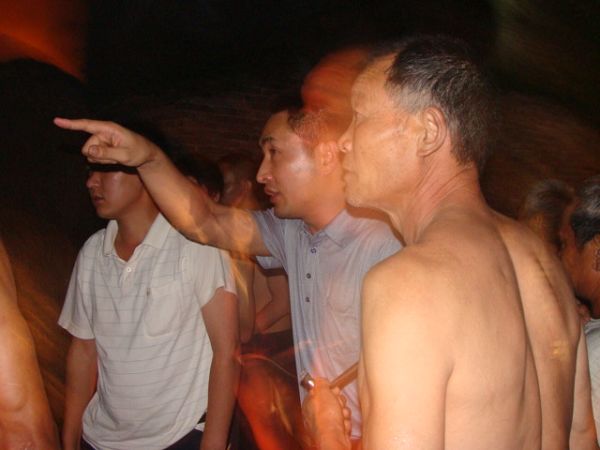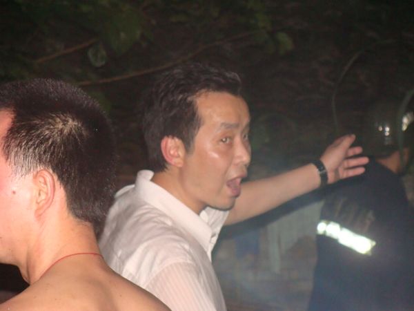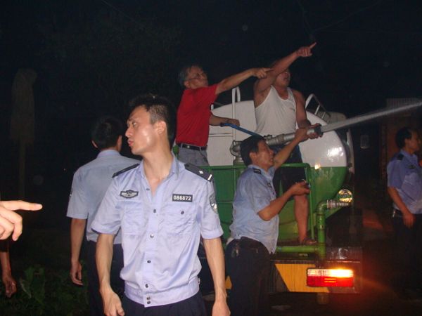 晚9时25分,扑救在紧张地进行着。惊慌失措的村民李德中突然大声疾呼,他家已着火的房内有液化罐!面对这一严峻情况,为防备液化罐爆炸引发重大人员伤亡,现场指挥部当机立断,立即疏散部分救援人员和群众。派出所利用警车的高音喇叭下达指令,干警和社区巡逻队员迅速将群众撤离到警戒线外。在此危险随时会袭来的时候,英勇的派出所干警、城管巡逻队员以及指挥部的全体同志和镇村干部没有丝毫的慌乱,他们坚守岗位,镇定地组织着救灾防灾工作。此刻,唯一防范重大事故发生的有效方法便是迅速控制液化罐部位的火势,确保液化罐不被大火吞噬。在向李德中询问液化罐存放的具体部位后,驾驶员吴昆鹏熟练的调转洒水车车头,将车挪至有利地段。而后,徐长富、李清雄、吴玉鹏、张九平等冒着液化罐爆炸的危险,将勇猛的水龙扑向存放液化罐的部位,与火魔进行着殊死较量……