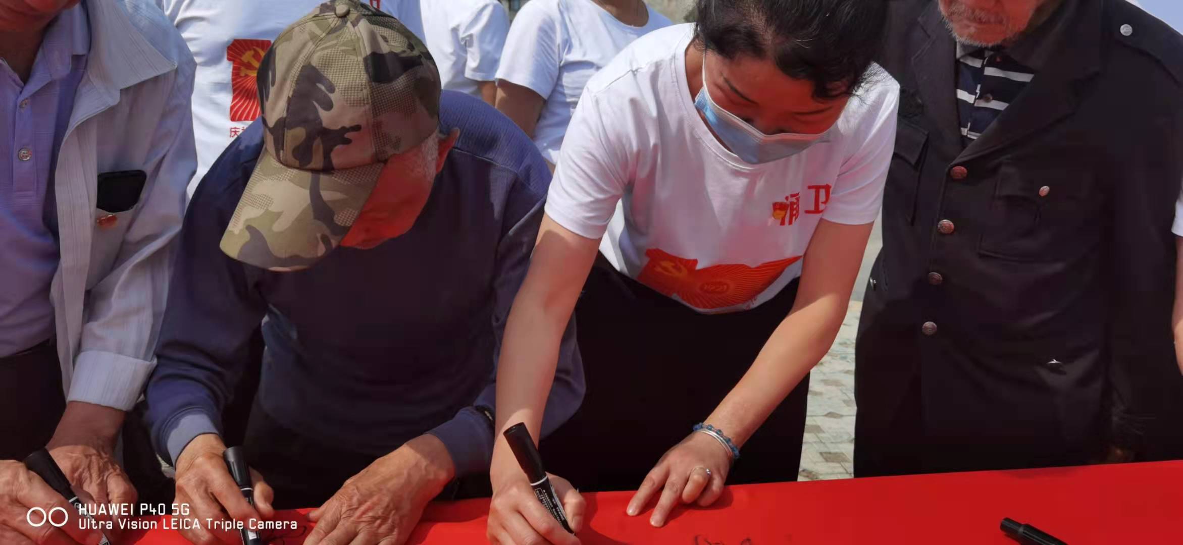 参加此次活动的党员除了有年轻党员,也有一直奋斗在工作战线上默默无闻的老党员干部,更有许多退休不退岗的八十高龄的优秀老党员,90多岁的抗美援朝老兵李文才在党旗上签下自己的名字时激动不已,活动让他回忆自己入党时的青葱年华和战火纷飞的峥嵘岁月,他告诫年轻党员,要倍加珍惜来之不易幸福生活,勇当党史学习的传播者,革命精神的传承者,立足本职岗位,真心为群众做好事、办实事、解难事。