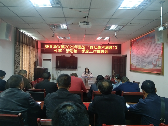 4月20日,涌兴镇召开2022年整治“群众最不满意10件事”活动第一季度工作推进会,各村(社区)业务人员参加会议,镇分管领导、组织委员、副镇长柳丽主持会议。