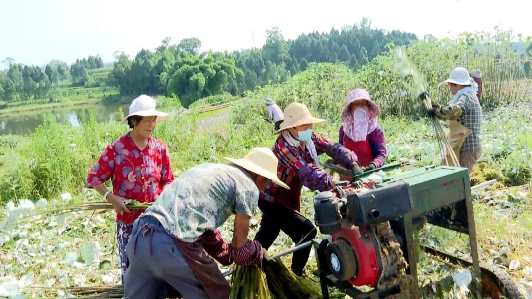 渠县涌兴镇木岭支部书记杨永平:光我们村已经发展苎麻800余亩,一年苎麻产三季,亩产在400余斤,产值在3200余元左右,可以解决全村闲置劳动力100余人。