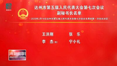 达州市第五届人民代表大会第七次会议副秘书长名单 字体:大 小 打印 关闭本页 作者: 来源:达州融媒 发布时间:2025-02-15 15:33:53 点击数: 达州市第五届人民代表大会第七次会议副秘书长名单2025年2月14日达州市第五届人民代表大会第七次会议主席团第一次会议决定 分享 分享到: