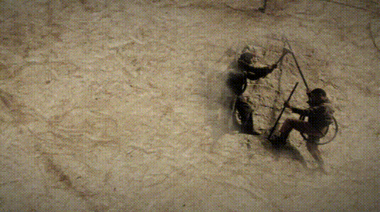 吊在几百米高的悬崖上打炮眼